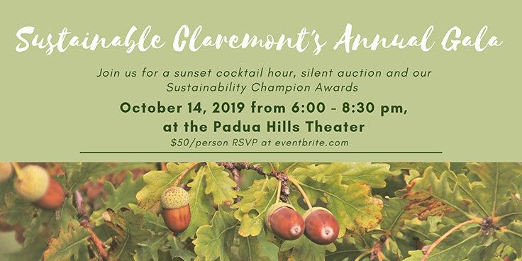 Sustainable Claremont Logo, with a globe on a sycamore leaf.